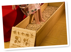 まずは、玄関脇の「桐の足湯」でのんびり。