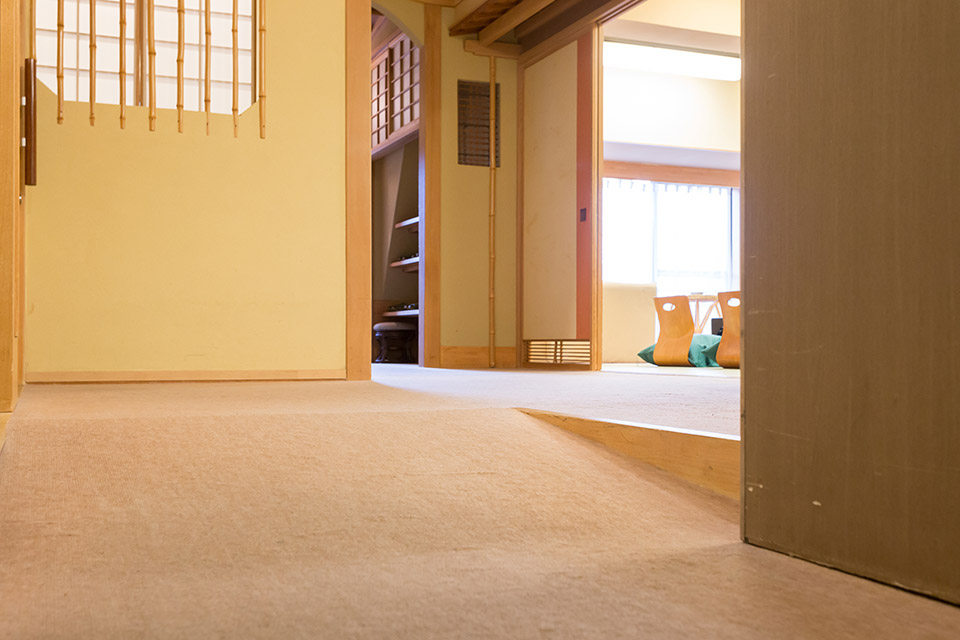 スロープや手すりを配置し、車いすの方やご年配の方が困らないように配慮しております。また、お部屋のソファがベッドに変わるハイダーベッドも採用、さらに簡易ベッドも準備しておりますので、どの部屋にも設置可能です。