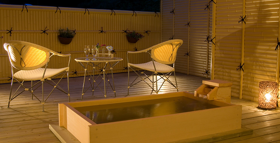 桐和モダン客室の露天風呂に2019/7/5より温泉を給湯することになりました。