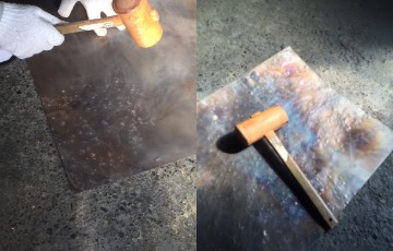 酸化発色が済んだ銅板。(写真は朱色)